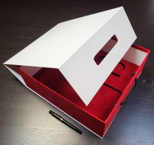 Ca producator de cutii de lux, realizam la comanda si alte dimensiuni si modele de cutii pentru produse textile (esarfe, batiste, rochii, ii, bluze, papioane, cravate) si de marochinarie (curele din piele, genti din piele, portofele din piele, brelocuri, incaltaminte).