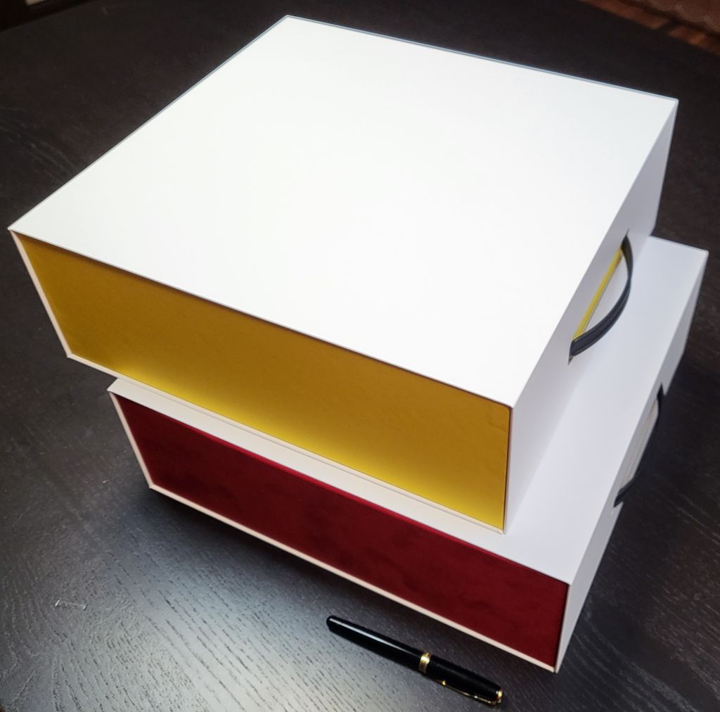 Ca producator de cutii de lux, realizam la comanda si alte dimensiuni si modele de cutii pentru produse textile (esarfe, batiste, rochii, ii, bluze, papioane, cravate) si de marochinarie (curele din piele, genti din piele, portofele din piele, brelocuri, incaltaminte).