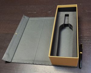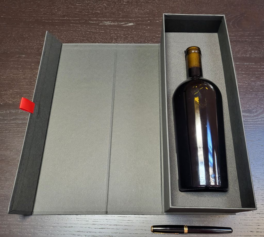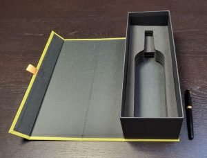In interiorul cutiei am introdus un insert din burete pentru protejarea si fixarea sticlei de bautura M6315.